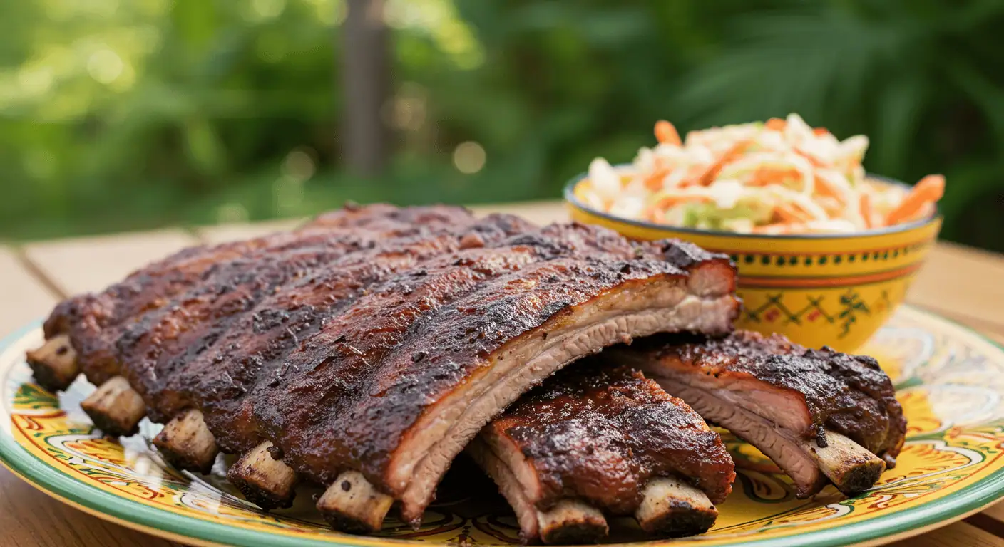 Slow-cooked pork ribs glazed with homemade barbecue sauce.